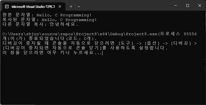 µ¿ÀÏÇÑ µ¿ÀÛÀ» ÇÏ´Â mystrcpy() ÇÔ¼ö¸¦ ±¸ÇöÇϽÿÀ.